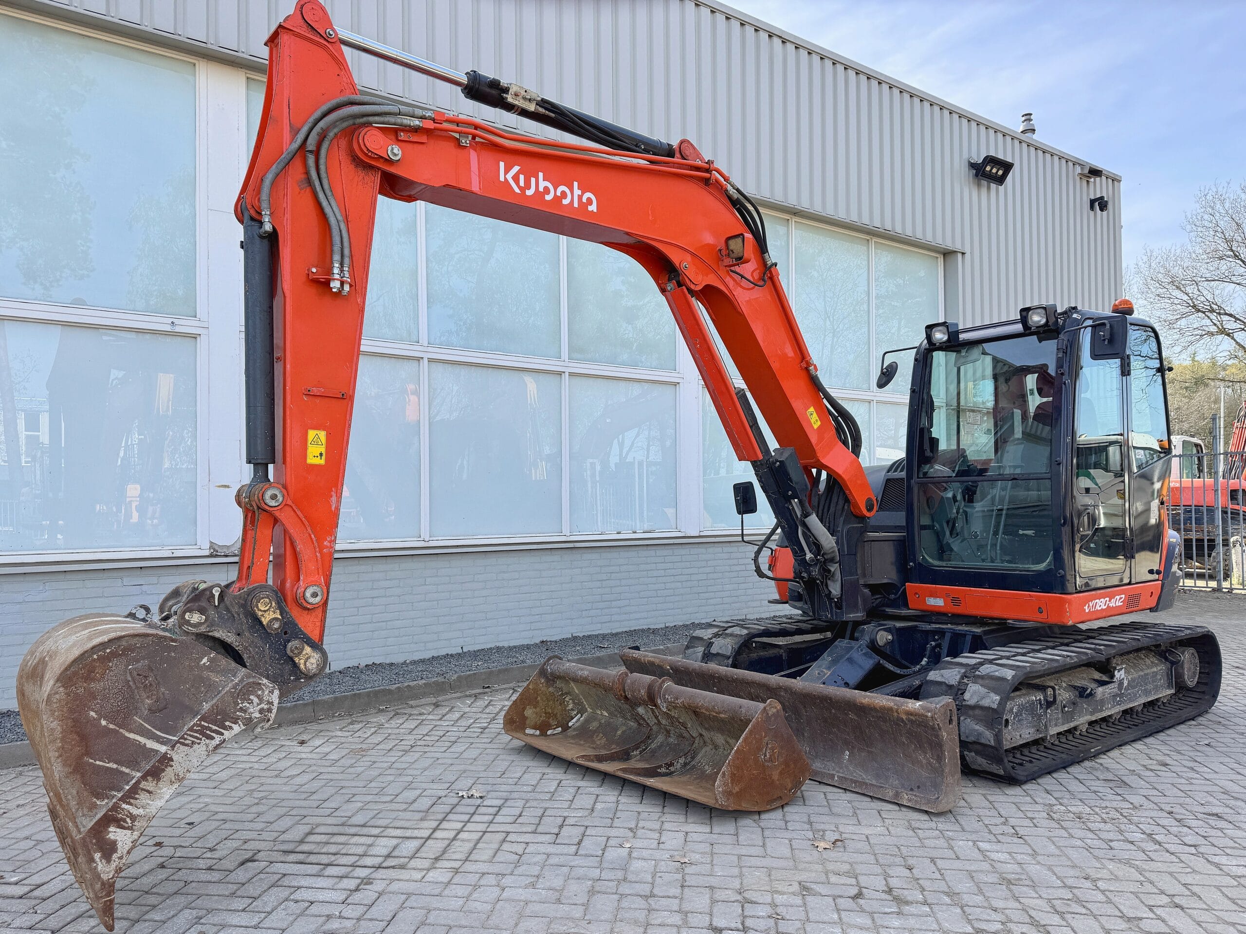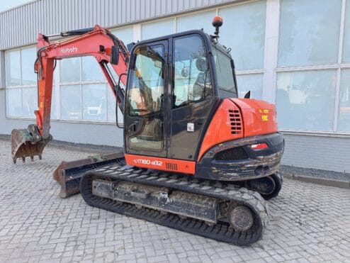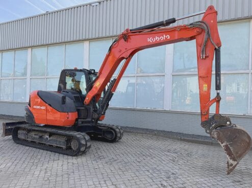 KUBOTA KX080-4a Año: 2019 Horas de lectura: 3896 H Peso: 8315 KG Potencia del motor: 46,5 KW Brazo mono Cámara con aire acondicionado Cuchara Pintura original Acoplamiento rápido Líneas hidráulicas adicionales Hoja con marcado CE En buen estado