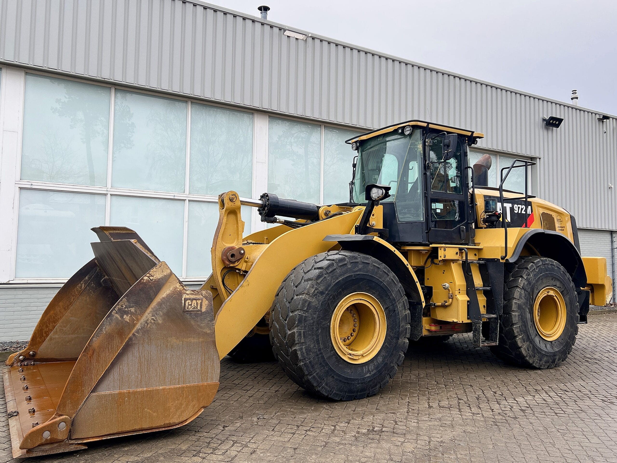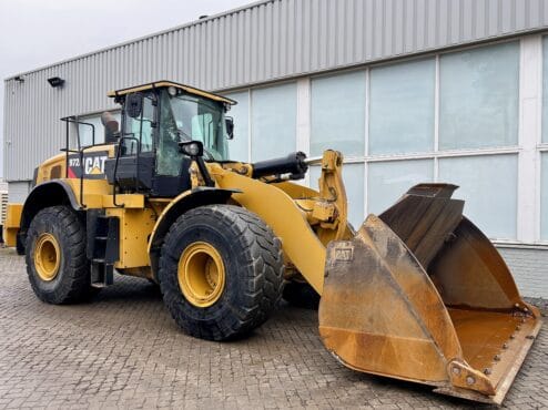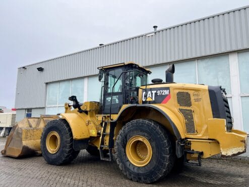 Caterpillar 972M Année : 2016 Heures de service : 12900h Poids : 24 900 kg Puissance moteur : 247 kW Godet Direction par joystick Pneus : 70 % en bon état Système de graissage centralisé Airco/Climatisation Caméra Garde-boue MARQUAGE CE En bon état